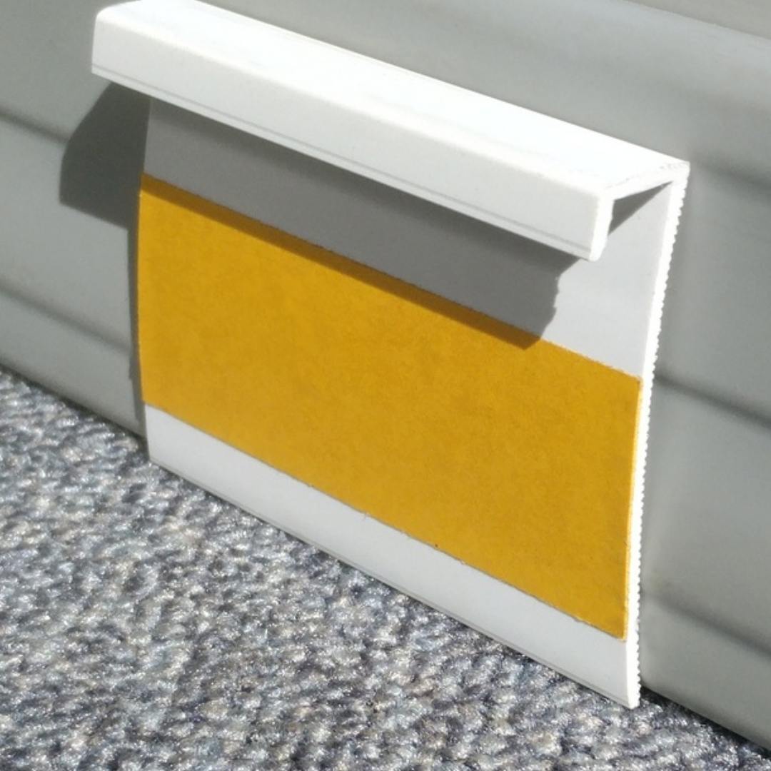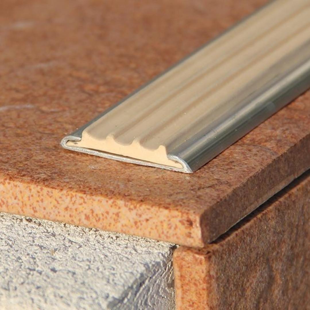 Накладки на ступени для защиты проступи и подступенка, монтируются на клей или саморезы. Имеют рифленую поверхность для снижения рисков, связанных со случайным проскальзыванием подошвы обуви.