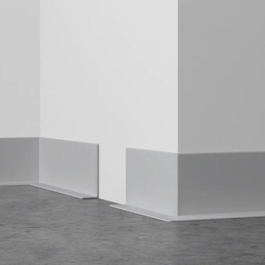 Плинтусная лента гибкая толщиной от 1,5 мм. Легко устанавливается даже вокруг колонн без нагрева монтажным феном. Окрашивается в массе на производстве или краской на основе полиуретана под цвет стен помещения после монтажа на объекте.