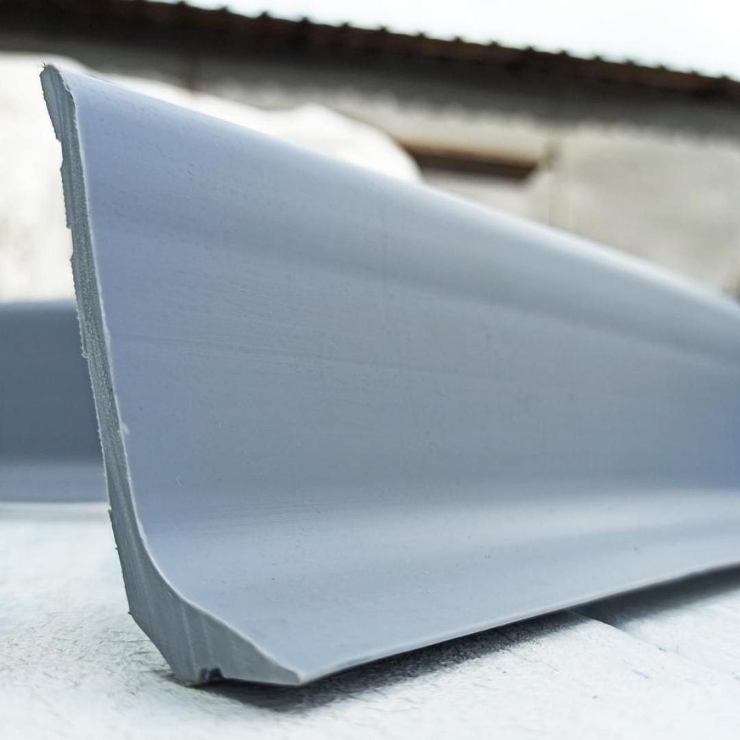 Плинтусная лента гибкая толщиной от 1,5 мм. Легко устанавливается даже вокруг колонн без нагрева монтажным феном. Окрашивается в массе на производстве или краской на основе полиуретана под цвет стен помещения после монтажа на объекте.