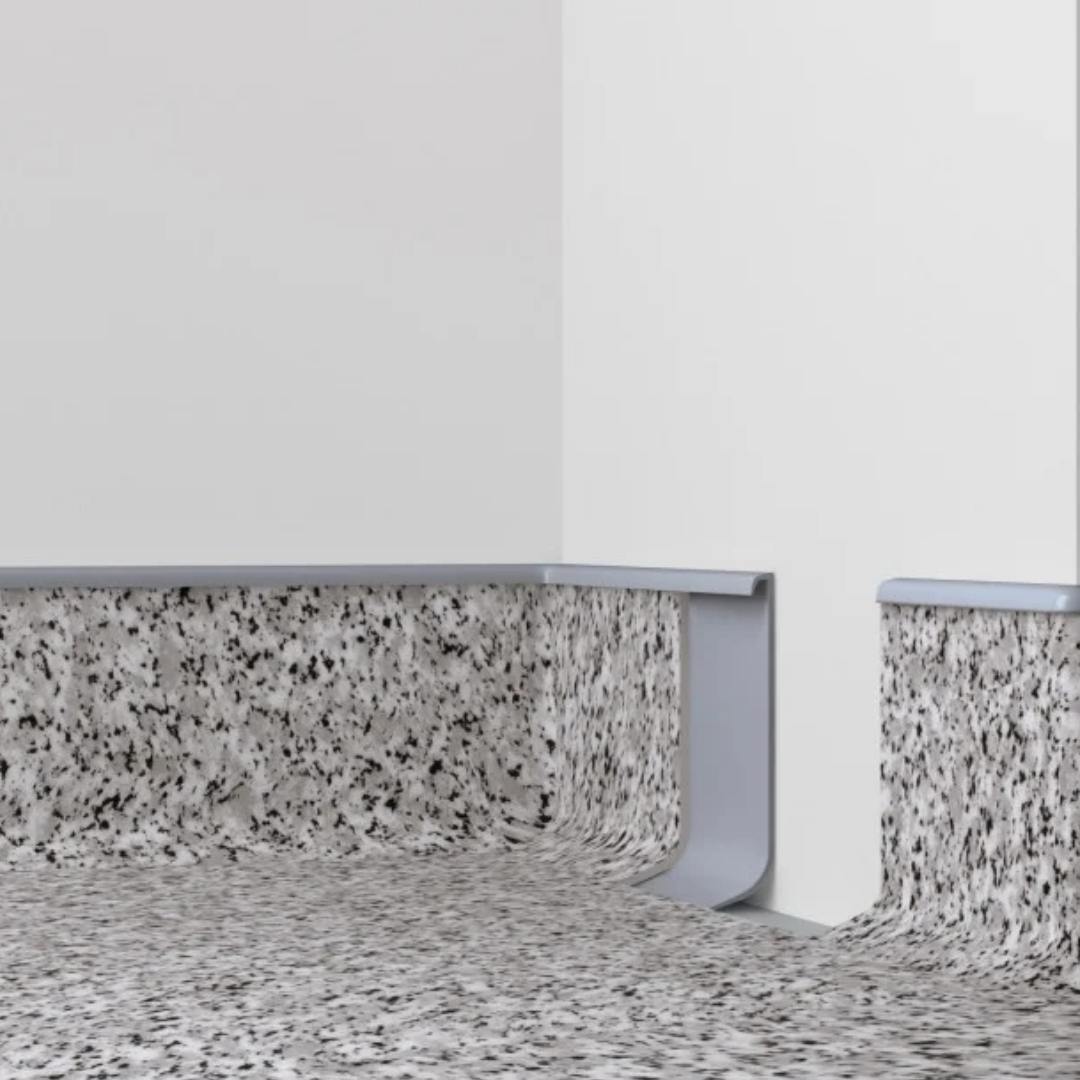 Подойдет для монтажа вокруг колонн. Произведена из материала, стойкого ко всем видам дезинфицирующих средств. Дополнительный рельеф/клеевая полоса на поверхности кромки не дают соскальзывать напольному покрытию. Может использоваться совместно с коннелюрным основанием для завода линолеума на стену.
