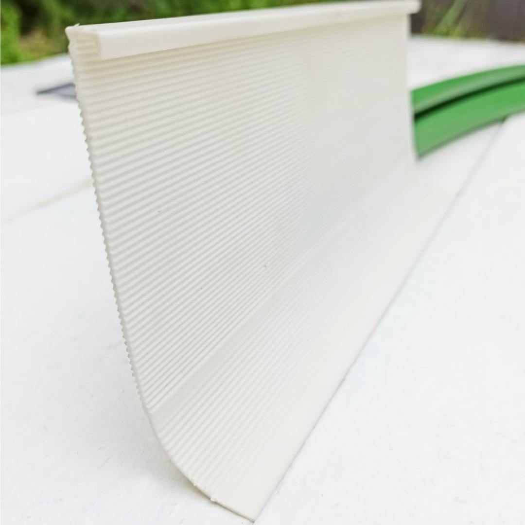 Для больниц, школ, детских садов и любых чистых помещений. В этом плинтусе кромка уже соединена с основанием для простого монтажа. Сделан из материала, стойкого ко всем видам дезинфицирующих средств. Производится в жестком или мягком каркасе.