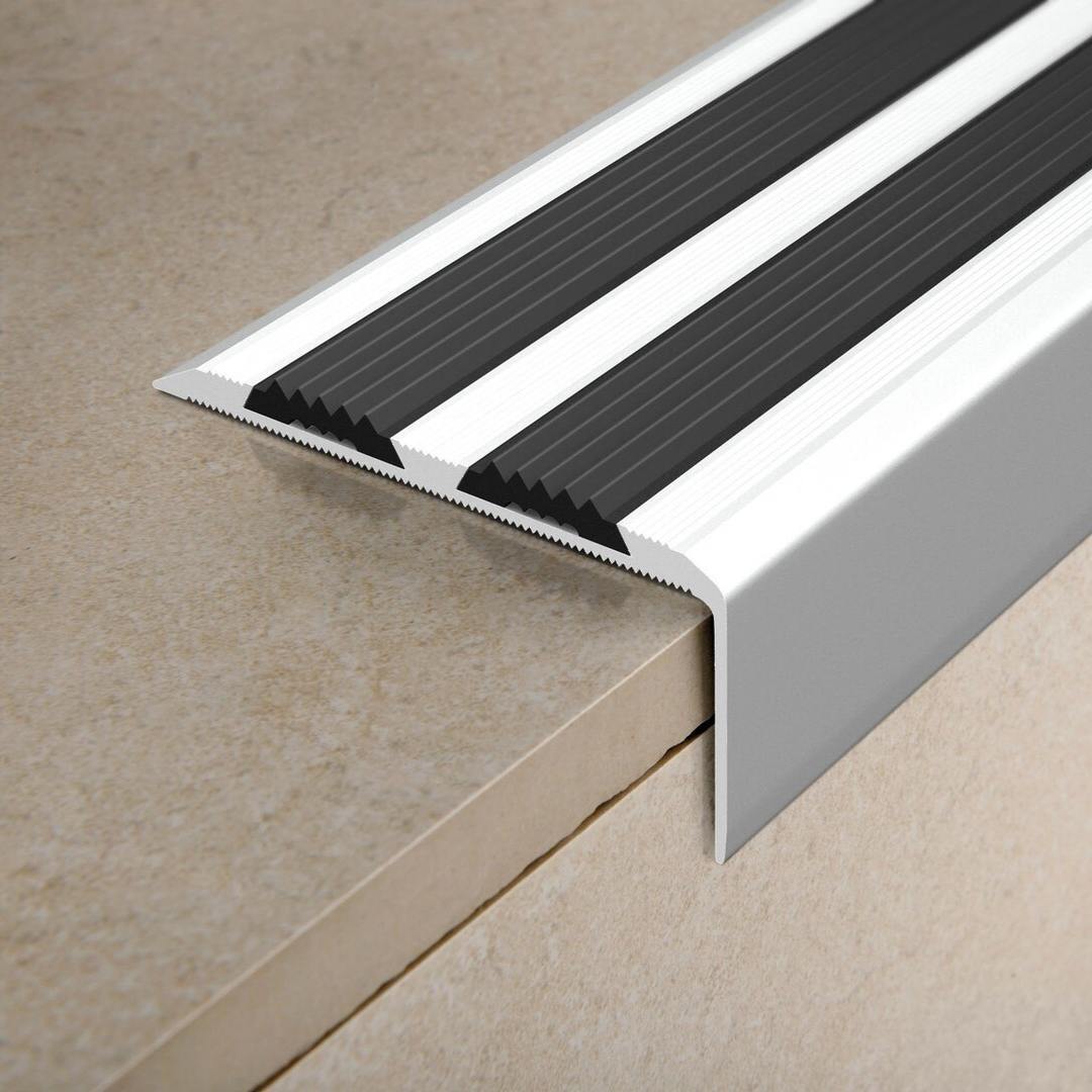 Накладки на ступени для защиты проступи и подступенка, монтируются на клей или саморезы. Имеют рифленую поверхность для снижения рисков, связанных со случайным проскальзыванием подошвы обуви.